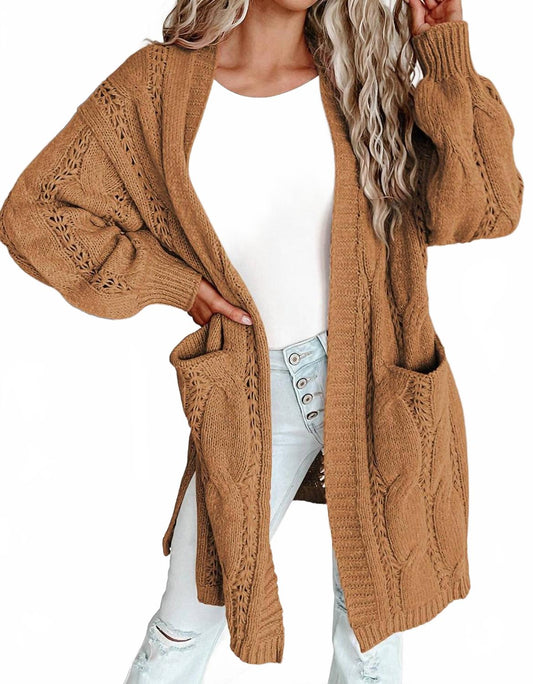 Chestnut Cable Eyelet Cardigan